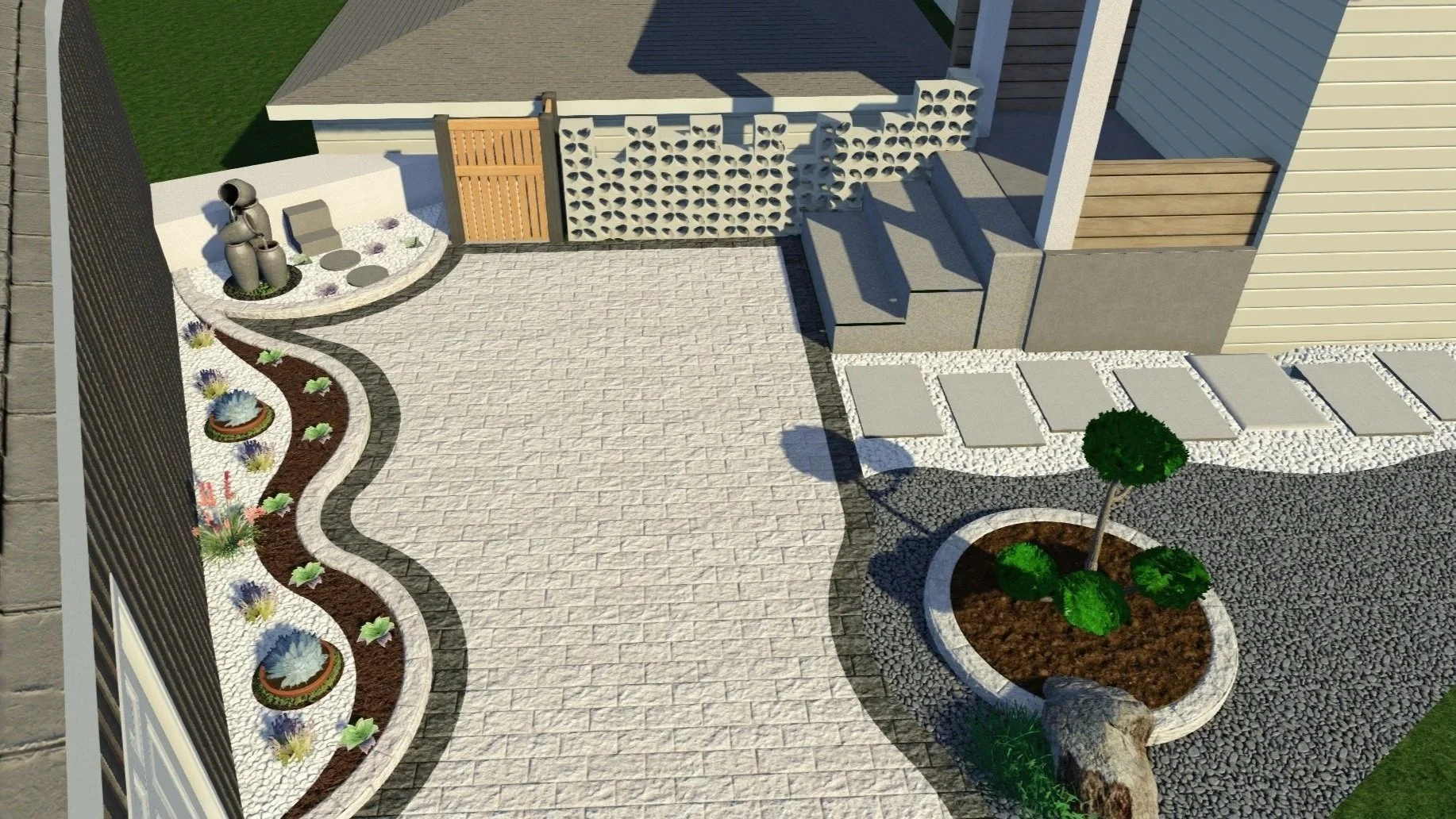We discuss options such as landscape design, lawn improvements, planting, and hardscape features (walkways, garden beds, etc.)